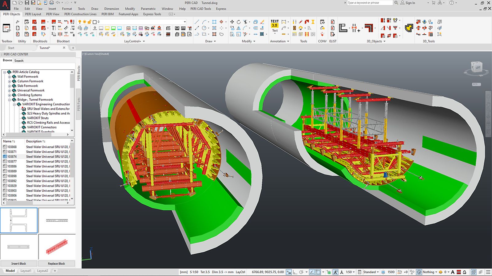 PERI CAD 25 è un potente plugin BricsCAD per utenti CAD esperti per la creazione professionale di planimetrie di casseforme e impalcatura.Supporta modellazioni 3D precise ed efficienti, la creazione di disegni costruttivi comprensibili e liste di materiali esatte per ottimizzare la logistica dei cantieri.